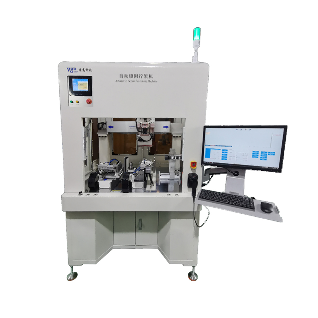 产品特点: VGLS-CS532-V25NM是一款集高精度、智能电批控扭、精密电夹爪抓取锁附、视觉检测于一体的高端柜式自动锁附系统。本设备专为应对精密装配领域的严苛要求而设计,旨在为客户提供稳定、精准、高效的全自动锁附解决方案,大幅提升产线自动化水平和产品良率。 主要应用于液冷管件接头的自动化锁附(GPU数据中心液冷管件)。
